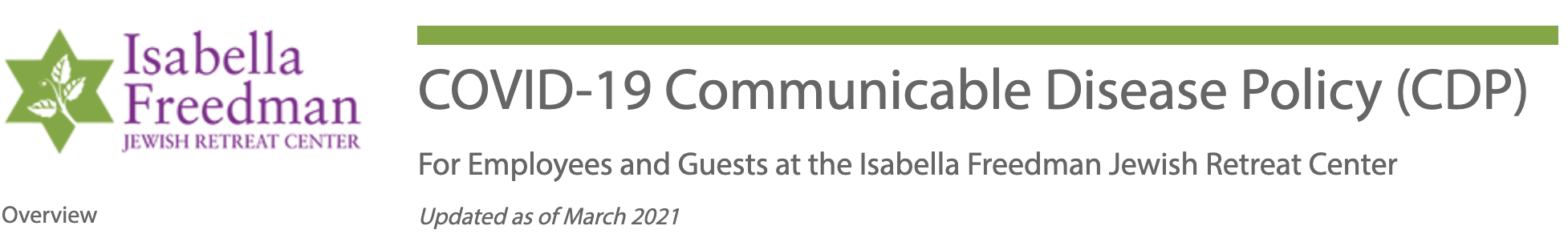 COVID-19 Communicable Disease Policy (CDP): Isabella Freedman Jewish Retreat Center