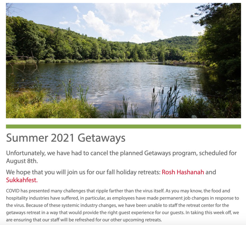 COVID has presented many challenges that ripple farther than the virus itself. As you may know, the food and hospitality industries have suffered, in particular, as employees have made permanent job changes in response to the virus. Because of these systemic industry changes, we have been unable to staff the retreat center for the getaways retreat in a way that would provide the right guest experience for our guests. In taking this week off, we are ensuring that our staff will be refreshed for our other upcoming retreats.